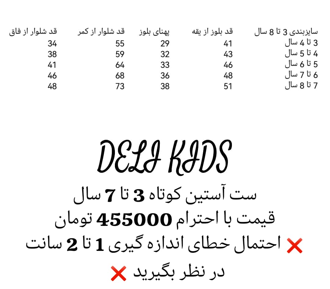 🌹سال نو مبارک 🌹هم کیفیت، هم قیمت مناسب! بهترین لباس های بچه گانه رو از دلی کیدز بخر🌹 «ارسال سفارشات از اهواز میباشد»❌ثبت سفارش از طریق سایت انجام میشود و زمان ارسال سفارشات از 5 فروردين ماه انجام میشود ❌